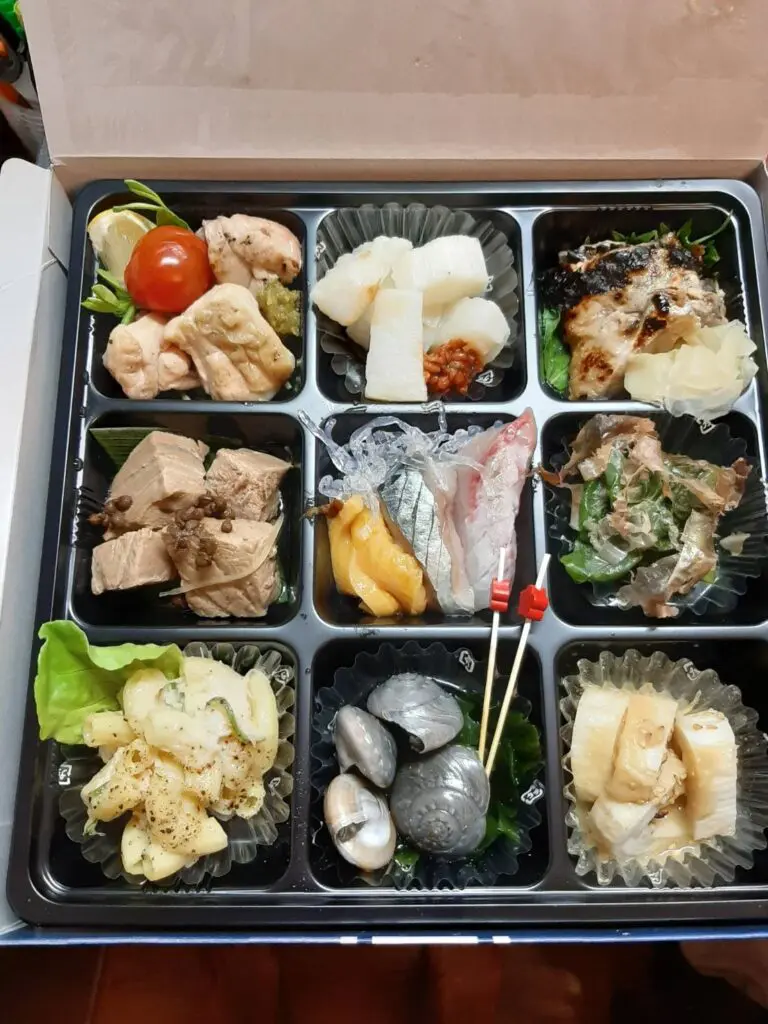 少しずつ9種類のおかずが入っています。