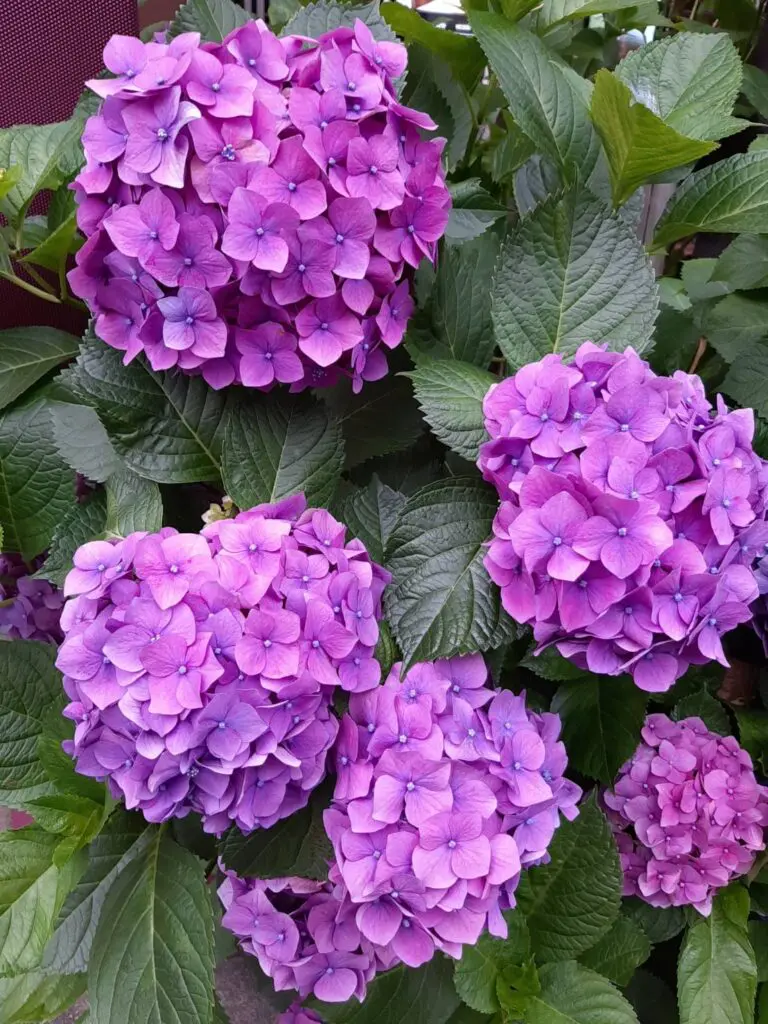 ディー立川店の近くに立派な紫色の紫陽花が咲いています。