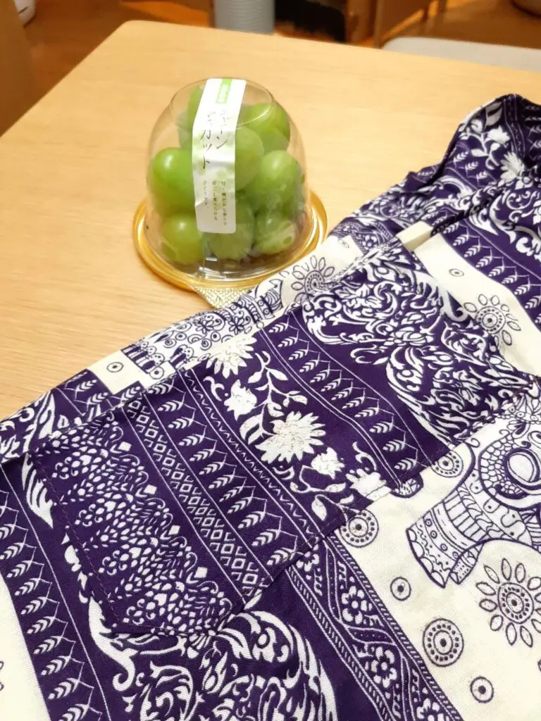 お客様からの差し入れ~タイパンツとシャインマスカット。