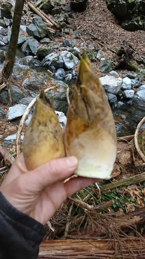 タケノコを探しましたが、ほとんど見つけられず、小さいの三つ掘りました。