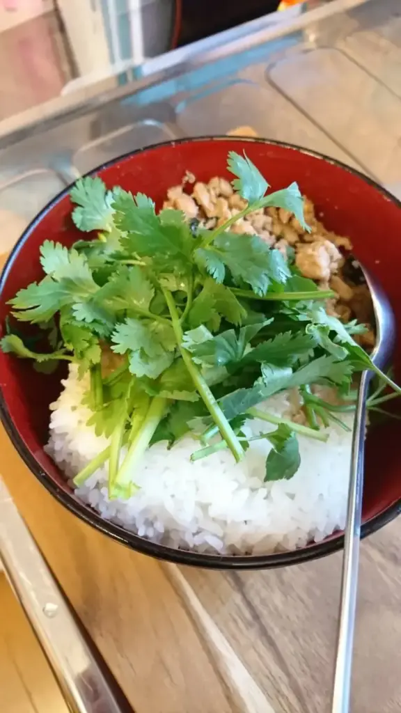 近所のバナナ食堂さんでガパオ弁当を買ったら、パクチーをサービスしてくれました~。嬉しいな、嬉しいな。