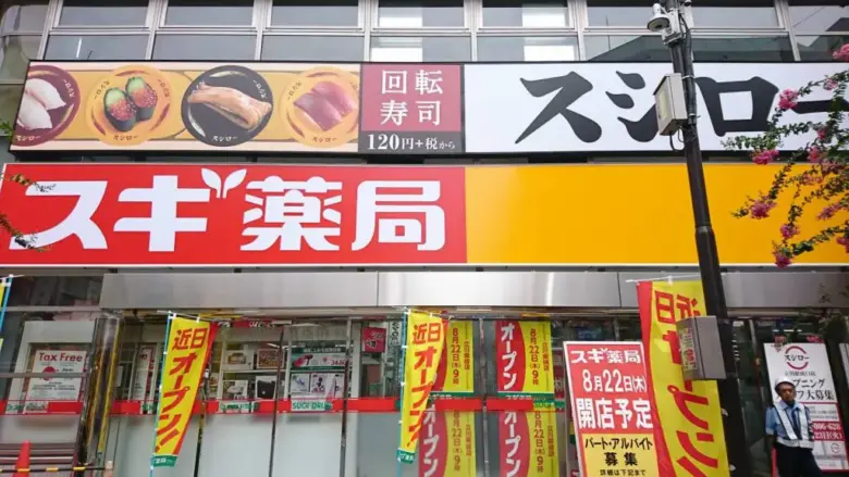当店の一号店の斜め前に、いよいよ明後日、薬局と回転寿司が開店します。