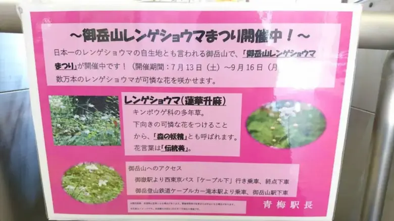 JR青梅線 御岳山 レンゲショウマ