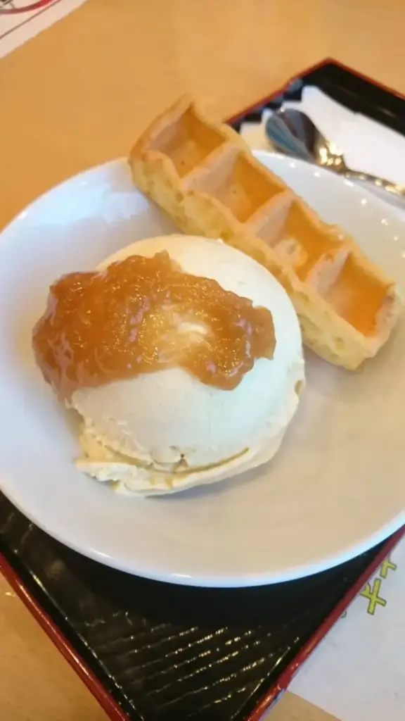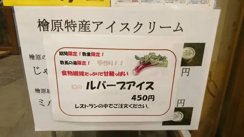 檜原村特産ルバーブが入ったアイスクリームを温泉に入った後に食べました。